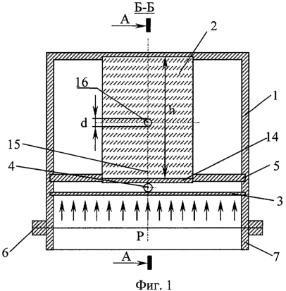 3 – упругая мембрана, например, из стали, установленная в пазу корпуса 1 и герметизирующая рабочее пространство корпуса;