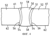 При использовании тележки она движется над сварным швом вдоль его длины, как видно на фиг.2. Показанный сварной шов имеет толщину больше, чем 16 мм, и содержит металл шва 50, соединяющий два листа 52. Каждый лист имеет зону термического влияния 54, которая простирается от линии сплавления 51 между металлом шва и листами до границы 56 в листе.