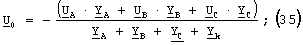 I0, U0,( UAI0),( U0I0) – соответственно угол сдвига по фазе тока через реактор относительно фазного напряжения источника в фазе А, угол сдвига по фазе напряжения смещения нейтрали относительно фазного напряжения источника в фазе А, угол сдвига по фазе фазного напряжения источника в фазе А относительно тока через реактор, угол сдвига по фазе напряжения смещения нейтрали относительно тока через реактор,