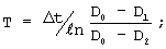 Расчетными параметрами переходного процесса являются: постоянная времени огибающей Т и ее установившееся значение До. Из свойств экспоненты следует, что для любых двух моментов времени t1, t2 справедливо соотношение или Поскольку предельная прочность земной коры величина примерно постоянная, то и «вспарывание» очага землетрясения, определяемое динамическим напором колебательной массы, происходит при одном и том же Do const. Разница в магнитуде ожидаемых землетрясений проявляется в разности постоянной времени огибающих, т.е. М2>M1 при T2>T1. Если измерения проводить через равные интервалы t=t2-t1=t3-t2, то значение Do можно вычислить аналитически: Функции переходного процесса иллюстрируются графиком фиг.4.