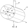 На фиг.2 показаны дополнительные детали вращающегося питателя 16. Питатель 16 имеет отверстие для приема порошка из цилиндрического резервуара (стояка) 23, цилиндрический корпус 24, множество вращающихся лопастей 26, установленных на валу 28, и выпускное отверстие 30, которое позволяет подавать дозируемое количество порошка в колонну очистки 18 (см. фиг.1). Открытое пространство между внешними кромками лопастей 26 и цилиндрическим корпусом 24 сведено до практически возможного минимума, чтобы предотвратить обратное прохождение газа через вращающийся питатель 16 в фильтр 14 (см. фиг.1). Преимущественно в цилиндрическом корпусе 24 могут быть предусмотрены вентиляционные каналы (не показаны), за счет чего газ, входящий в области, опорожненные при удалении порошка в колонну очистки 18, может выходить из питателя 16 ранее поступления в наполненную газом область свежего порошка из цилиндрического резервуара 22.