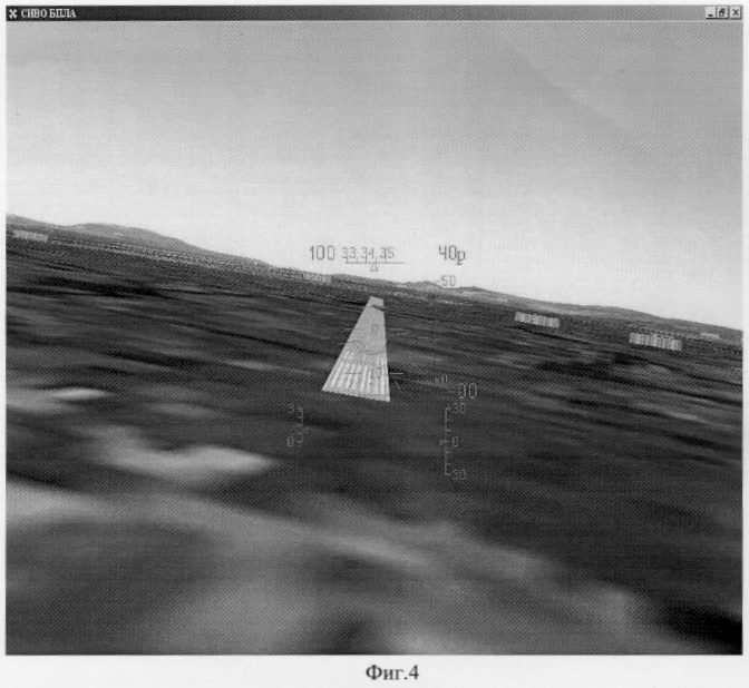 – на фиг.4 представлен информационный кадр системы имитации телевизионного изображения на этапе посадки.