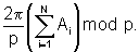 Сущность изобретения заключается в многократном использовании узла, состоящего из дешифратора и управляемого фазовращателя для представления каждого слагаемого и проведения операции модульного сложения. В фазовращателе сдвиг фазы  i прямо пропорционален значению i-го слагаемого т.е. где р – величина модуля. Таким образом, после последовательного прохождения гармонического сигнала через фазовращатель фаза гармонического сигнала на его выходе будет прямо пропорциональна значению модуля суммы N чисел. Мультиплексор предназначен для последовательной подачи одного из N слагаемых на вход дешифратора путем подачи на его адресный вход возрастающих по величине двоичных кодов чисел. Амплитудный детектор обеспечивает преобразование гармонического сигнала в постоянное напряжение. Оно поступает на управляющий вход коммутатора и прекращает подачу гармонического сигнала с выхода генератора на вход управляемого фазовращателя.