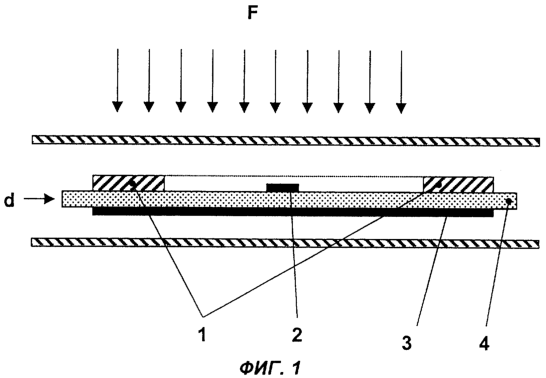На фиг.1, где электронная этикетка представлена в сечении, можно видеть схематично изображенную рамку 1, а также электронный чип 2. Следует отметить, что хотя данный чип расположен внутри рамки, он может быть установлен и вне поверхности, ограниченной рамкой.
