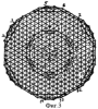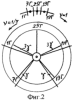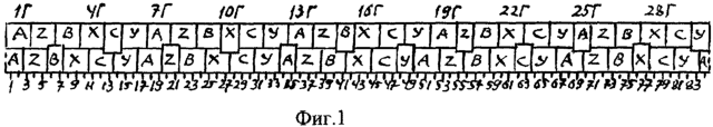 На фиг.1 показана развертка пазовых слоев предлагаемой обмотки при 2p=10, z=84 с номерами 1…84 и номерами катушечных групп от 1Г до 30Г (размечены группы первой фазы 1Г+3(с)Г=1Г, 4Г, 7Г, …), чередованиями фазных зон в последовательности A-Z-B-X-C-Y; на фиг.2 показаны диаграммы сдвига осей нечетных групп первой фазы относительно оси симметрии 25Г для полюсности р=5 основной гармонической =1 (наружная) и полюсности p = p=1 низшей гармонической =1/5 (центральная); на фиг.3 построены по треугольной сетке многоугольники МДС обмотки фиг.1 при х=0 (внутренняя), х=0,25 (наружная). Такая m’=6-зонная обмотка по фиг.1 соединяется обычным образом при встречном включении в фазах четных групп относительно нечетных с их началами из начал групп 1Г, 11Г, 21Г для фаз I, II, III и фазы могут сопрягаться звездой или треугольником.