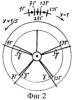 Для обмотки фиг.1 обмоточный коэффициент при равновитковых катушках (х=0) по коэффициентам укорочения Кy=sin(90°yk/ п)(yk=12, п=z/2p=72/5) и распределения Kp=0,5/Nsin(30°/N) равен Коб.о=КyКр=0,922464. Для неравновитковых катушек к Коб.о добавляется значение, зависимое от показателя неравновитковости х групп фазы по фиг.2 при угле сдвига пазов п=360°/z=2,5°:2×0,965926[-cos(0,5-10) п+cos(7,5 п)]=+x0,152124 при Кy=sin(90°yп/ п)=0,965926(yп=12), x/24=+х0,00634 и тогда
