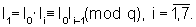 Значение q выбирают из простых чисел и для регистра сдвига, имеющего 256 разрядов, q=257, для регистра сдвига, имеющего 128 разрядов, q=127. В этом случае за счет возведения в степень порождающего числа l0 мы будем переходить от одного элемента поля Fq к другому. При этом, как показано в [5] стр.9, если l0 – элемент порядка k то все элементы l0, l0 2, l0 3, …, l0 k-1 будут различны.