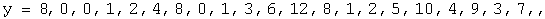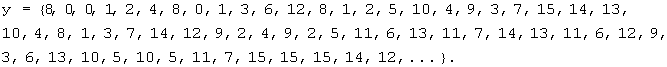 Если двоичные числа будем снимать с 1, 2, 3 и 4 разряда регистра сдвига (блоки 6, 7, 8, 9, фиг.2) и на каждом такте работы регистра сдвига с набором < 1, 2, 3, 4> будем сопоставлять двоичный вектор (число) y= 1+2 2+22 3+23 4, то последовательность двоичных чисел в процессе работы регистра можно рассматривать как последовательность y чисел (символов) {0, 1, 2, …, 15} в виде