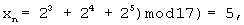 и вычисляют для каждого такта работы регистра сдвига элементы конечного поля F17