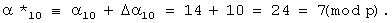 Если при приеме сообщения произошла ошибка, например, при приеме десятого символа вместо символа 15 принят символ 10, то при декодировании сообщения этому символу будет соответствовать символ 14 (вместо символа 7), а при приеме тринадцатого символа вместо символа 12 принят символ 11, то при декодировании сообщения этому символу будет соответствовать символ 1 (вместо символа 7). Эти ошибки исправляются следующим образом:
