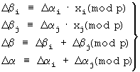 – вычисляют корректирующую поправку  i для искаженного символа исходного текста на приемной стороне