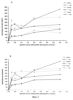 Эти данные, полученные на лабораторной модели, позволяют, полагаем, утверждать о подобной тенденции изменения содержания олигомерного хитозана (с числом звеньев в цепи от мономера – глюкозамина до октамера) в крови и различных органах человека. Особенно важны сведения о динамике проникновения и выведения высокомолекулярного 3H-хитозана при его введении в виде раствора в воде и настое сбора лекарственных растений, используемого при получении фитохитодеза серии 14 (гепаферм) (фиг. 2).