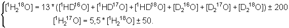 В результате проведения математических преобразований и подстановок значений вышеуказанных величин, получаем следующую формулу для пересчета концентрации из относительных величин D и 18О в единицы ppm: