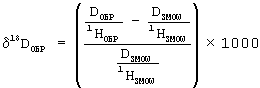 Для расчета единиц D и 18О используется следующая формула [6]: