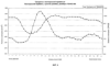 На фиг.1 показаны точки измерений для плотности и влажности нормального табачного штранга. Измерения производились с интервалом 1 мм и нанесены соответственно одно над другим. Верхняя кривая показывает распределение влаги для нормальной сигареты, которая лежит в интервале между 10,0 и 10,5% воды. Над соответствующим участком измерения колеблется плотность для нормальной сигареты между 205 и 255 мг/см3, причем среднее значение находится примерно в районе 220 мг/см3.