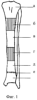 Фиг.1 – схема исследуемого макропрепарата большеберцовой кости (а – проксимальный метаэпифиз, б – проксимальный дистракционный регенерат, в – проксимальный перемещаемый фрагмент, г – дистальный дистракционный регенерат, д – дистальный перемещаемый фрагмент, е – участок стыка костных фрагментов, ж – дистальный метаэпифиз);