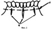 Фиг.4. Фиксация слизистой оболочки к надкостнице и ушивание ран после операции (схематическое изображение): (1) – глубина преддверия (оперативно создаваемая).