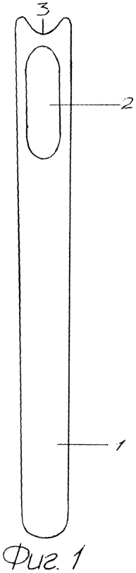 Ранее указанная цель изобретения достигается тем, что направляющий инструмент после обнажения костно-хрящевых структур при выполнении открытой ринопластики прикладывается к носу таким образом, что горб носа оказывается внутри овального отверстия 2 направляющего инструмента 1. При этом направляющий инструмент опирается внизу на нижние латеральные хрящи, а вверху на переносье – выгнутостью в виде полукруга 3. По направляющему инструменту сначала скальпелем или острым широким долотом срезается хрящевая часть горба, а затем широким долотом горб сбивается до носолобного сочленения. Спинка носа в этом случае формируется ровной и в последующем не развивается повторных деформаций носа, требующих повторных пластических операций.