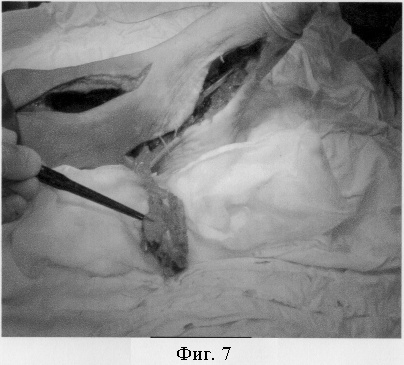 2) Способ требует применения микрохирургической техники, в том числе микроскопа, что удлиняет время операции, необходимое для наложения микрососудистого шва на 2-3 часа при свободной трансплантации комплекса тканей.