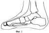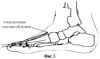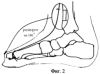 2. На фигуре №2 показан вариант забора костного трансплантата из большеберцовой кости, входящего в состав кожно-фасциального тыльного лоскута стопы. После мобилизации комплекса тканей производят его ротацию на 180°.