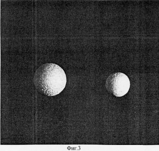 Вид орбитальных имплантатов представлен на фиг.3 и 4. В зависимости от размера орбиты больного имплантат может быть выполнен в виде шара (фиг.3) диаметром 14, 16, 18, 20, 22 мм. Имплантат в виде скругленной пирамиды (фиг.4) может иметь объем 1430-5572 мм3 (1,4-5,6 см3). Радиус кривизны основания скругленной пирамиды 7-11 мм. На боковых гранях скругленной пирамиды могут быть выполнены канавки шириной 3-5 мм, в которые при имплантации укладываются прямые глазодвигательные мышцы.