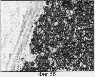 На фиг.5а – гистологический срез, сделанный через 7 суток, демонстрирует отсутствие капсулообразования имплантата, а также макрофагальной и гигантоклеточной реакции внутри пространства пустот. Все это свидетельствует о незначительности воспалительной реакции в ответ на имплантацию.