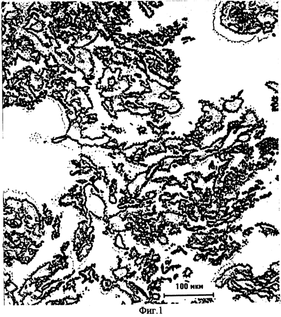 На фиг.1-2 представлены микрофотографии структуры орбитального имплантата. Отчетливо видна трехмерная сеть, образованная пространством пустот, и узлы полимерной матрицы.