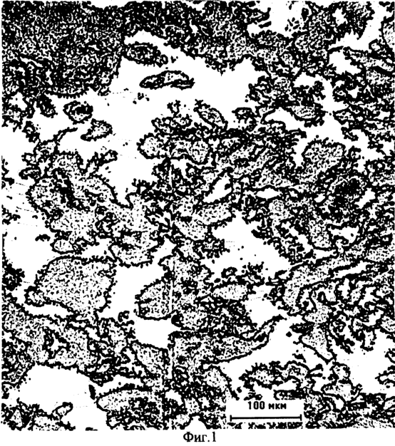 На фиг.1 представлен снимок поверхности имплантата, сделанный под микроскопом. Отчетливо видна трехмерная сеть, образованная пространством пустот, и узлы полимерной матрицы.