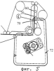 Фиг.2 представляет собой соответствующий предшествующему техническому уровню вид сверху механизма складывания прокладки.