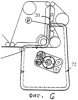 Как было отмечено выше и как показано на фиг.3, 6 и 8, траектория 72 перемещения штифта спроектирована таким образом, что штифт перемещается по той же траектории, что и прокладка, от того момента, когда прокладка поступает на операцию складывания прокладки (позиция А на фиг.3), до того момента, когда прокладка выйдет из средства для сгибания (складывания) (позиция D на фиг.6). По мере того, как ремень совершает движение по заданной для него траектории, он совершает повороты внутрь и наружу для образования замкнутого контура.