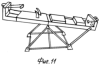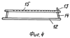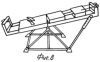 Установка изображена на фиг.1-6. На фиг.1 дается общий вид установки в горизонтальном, исходном положении, где поз.1 – основание стола с шарнирами, поз.2 – наклоняющаяся рама стола на шарнирах, поз.3 – движущийся участок стола, поз.4 – телескопический фиксатор угла наклона стола на шарнирах, поз.5 – шарниры. На фиг.2 изображен вид снизу движущегося участка стола, где поз.6 – рама движущегося участка стола, поз.9 – электродвигатель с эксцентриком на валу, поз.10 – ролики, поз.11 – заземление. На фиг.3 изображен вид сверху движущегося участка стола, где поз.7 – упоры в подмышки, поз.8 – включатель для электровибратора. На фиг.4 изображены две трубы разного диаметра, на одном конце трубы большего диаметра имеется одно отверстие для установки «пальца», а на другом конце – отверстие для шарнира. На трубе меньшего диаметра имеются отверстия, на конце этой трубы имеется отверстие для шарнира. На фиг.4 – поз.15 – отверстия для фиксации, поз.14 – «палец» для фиксации угла наклона рамы стола, поз.13 – шарниры. На фиг.5 изображен захват для головы с динамометром для определения усилия на шейный отдел позвоночника. На фиг.6 изображен захват для ног с двумя динамометрами (поз.16) для определения усилия на позвоночник. На фиг.7 изображено исходное положение для вытяжения позвоночника. На фиг.8 изображена стационарная вибродекомпрессионная установка в рабочем положении для вытяжения позвоночника. На фиг.9 изображена стационарная вибродекомпрессионная установка в рабочем положении для устранения кривоногости. На фиг.10 изображена стационарная вибродекомпрессионная установка в исходном положении для вытягивания шейного отдела позвоночника, а на фиг.11 – в рабочем положении.