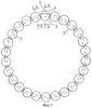 Известен другой массажер, выполненный в виде жесткого обруча со смонтированными на нем массажными элементами в виде роликов на осях, перпендикулярных к плоскости обруча, и равномерно размещенных по его периметру с возможностью вращения вокруг своих осей [RU 2069555 C1, 27.11.1996]. Ролики размещены по обе стороны обруча в его плоскости, обруч выполнен составным из отдельных трубчатых элементов, соединенных между собой осями. В средней части каждого трубчатого элемента выполнен продольный вырез для среднего ролика.
