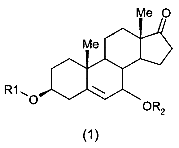 DHEA предварительно солюбилизируют в дипропиленгликоле и затем добавляют другие компоненты фазы В для ее образования. Фазу В вводят в фазу А при перемешивании мешалкой лопастного или ротор-статорного типа. Эмульсию приготовляют при температуре ниже 40°С. Тогда получают слегка вязкую, стабильную композицию, не проявляющую рекристаллизации DHEA спустя по меньшей мере 15 дней при температуре 4°С. Примеры 9-16 Композиции, содержащие 7- Согласно вышеописанной методике можно получать соответствующие примерам 1-8 композиции, где, однако, вместо DHEA используют его метаболитческое производное: 7- Примеры 17-24 Композиции, содержащие 7-кето-DHEA Согласно вышеописанной методике можно получать соответствующие примерам 1-8 композиции, где, однако, вместо DHEA используют его метаболическое производное: 7-кето-DHEA. Пример 25 Исследование высвобождения и пенетрации DHEA в случае композиции согласно изобретению Протокол: Высвобождение и пенетрацию in vitro DHEA и/или его предшественников или химических и/или биологических производных в случае композиций согласно изобретению может быть оценено на неповрежденной человеческой коже. Тестируемую композицию вносили на 16 часов в диффузионные стеклянные ячейки (3 мл; 1 см2). Использовали неповрежденную кожу без дерматом. Кожу фиксировали в диффузионной ячейке, причем дерму вводили в контакт с физиологическим солевым раствором, дополненным 0,25% (мас./мас.) эмульгатора (жидкий рецептор). Систему выдерживали в неизменном состоянии (без обновления жидкого рецептора в зависимости от времени). Использовали абдоминальные и/или грудные пластики, происходящие от “эстетической” хирургии. Композицию наносили на эти три различных образца кожи в количестве по 10 мг композиции на см2. Нанесения осуществляли без окклюзии. Поскольку нанесения осуществляли при дублировании, следовательно, композиции наносили в целом 6 раз. По истечении времени аппликации в случае каждой диффузионной ячейки удаляли избыток поверхности, отбирали жидкий рецептор и кожу. Эпидермис (включая stratum corneum) отделяли от дермы. В случае каждой тестируемой композиции рассчитывали полный баланс действующего начала, учитывая избыток и найденные в коже и в жидком рецепторе количества. Концентрации действующего начала определяли с помощью ВЭЖХ с детекцией путем масс-спектрометрии с химической ионизацией при атмосферном давлении (APCI/MS/MS) (предел определяемого количества: 10 нг·мл-1). Результат: В частности, показано, что при использовании композиции согласно изобретению в коже обнаруживают значительные количества DHEA. Пример 26 Определение кожной толерантности Протокол: Локальные нанесения композиций согласно изобретению повторяли в течение 2 недель на правое ухо мышей с внутренней стороны (за исключением во время уик-энда). Композиции помещали в пробирки, причем их высушивали при комнатной температуре. Каждую пробирку для идентификации снабжали этикеткой, где фигурировали номер исследования, название продукта, номер композиции, доза и крайний срок использования продукта. Используемыми животными являлись самки мышей Balb/C Albinos Consanguine в возрасте 7-8 недель в начале исследования, происходящие из IFFA CREDO, Франция, группами по 8 мышей. Животных выдерживали для акклиматизации в течение по меньшей мере 5 дней перед началом исследования. Животных взвешивали в день 1, в начале