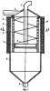 Использование ячеистого сердечника позволяет замкнуть магнитное поле и создать повышенную напряженность между корпусом и ячеистым сердечником, использование опор для ячеистого сердечника позволяет создать вертикальные полости, в которые попадает пыль, что исключает влияние на нее движения пылегазового потока, тем самым повысить извлечение пыли из газа. Очищенный газ попадает в запирающий стакан 7 и направляется в патрубок 1.