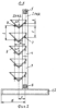 Ряд I стержней 7 установлен в плоскости рамы. Стержни 8 ряда II выполнены в виде скоб, которые своими концами жестко закреплены на раме.