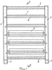 Расстояние t выбрано таким, чтобы каждый ящик 9 свободно устанавливался или снимался с полки, не задевая другие ящики.