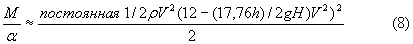 Максимальное значение М/ в уравнении (8) существует для H=12 футов (3,7 м) и для h=0,02 фута (6 мм) при: