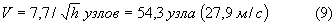 Откуда определяется скорость V: 83 фута/с=49 узлов (25 м/с).