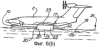 Дополнительное преимущество выступа этого типа, образующего носок 64 второй ступени, заключается в том, что его можно использовать для снижения общего сопротивления концевой шайбы 17. В случае одноступенчатого носка 28 ширина носка на конце 19 концевой шайбы должна выбираться из условия создания достаточно большой каверны 25 на конце 19 при погружении на расчетную максимальную глубину погружения. Эта ширина носка 28 приблизительно в 6 раз больше соответствующей ширины, которая была бы при эксплуатации исключительно на волне средней высоты. Например, при волнении 4 балла наивысшая волна составляет приблизительно 13,3 фута (4050 мм), но средняя высота волны только 4,2 фута (1280 мм). Если летательный аппарат летит так, что конец концевой шайбы удерживается погруженным как раз на подошве волны средней высоты, то среднее значение глубины погружения составляет 4,2 фута (640 мм).