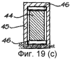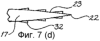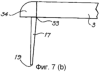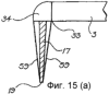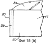 На фигурах 16(а) и 16(b) показано временное увеличение ширины носка, которое можно эффективно получить посредством убирающегося элемента 62 передней кромки, который имеет большую ширину по сравнению с шириной носка 28 концевой шайбы и может протягиваться по и на всем протяжении носка 28. Этот элемент передней кромки выполнен по форме более толстого носка 62 из сегментов, соединенных друг с другом в цепочку, так что он может храниться внутри законцовки крыла, а затем выпускаться или убираться посредством зубчатого колеса 63, благодаря которому сегменты носка 62 сдвигаются вниз и вверх по внешней поверхности обычного носка 28. Однако этот механизм является несколько сложным.