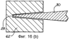 Более простое решение заключается, как показано на фигурах 18(а) и 18(b), в образовании неподвижного выступа 64 на каждой стороне передней части 30 концевой шайбы, эффективно создающего двухступенчатый носок.