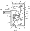Переводной металлический рельс 10 прикрепляется к металлическому основанию 11 посредством вращаемой оси 12 и имеет в месте крепления полукруглый изгиб, соединяющий его наземную и подземную части. Подземная часть располагается в металлической коробке 13 (фиг.7), предназначенной для размещения в ней стрелочного механизма, и имеет на конце овальное отверстие 14, через которое проходит штырь 15, имеющий возможность перемещения по овальному отверстию 14 относительно переводного металлического рельса 10. Штырь 15 крепится к подвижной рейке 16, имеющей овальные отверстия 17, через которые проходят штыри 18, имеющие возможность перемещения относительно рейки 16 и прикрепленные ко дну подземной металлической коробки 13. Подвижная рейка 16 снабжена зубцами 19, контактирующими с шестерней 20, связанной осью с реверсируемым электродвигателем 21. Последний связан посредством проводов с электронным переключателем 22, соединенным с проводами с разъемами 23, с радиоантенной 24, размещаемой под отверстием 25 в выступе металлической коробки 13, датчиком 26 и электронагревателем 27.