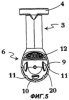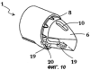 Фиг.8 схематично иллюстрирует, на виде спереди, один из вариантов выполнения стыковочного устройства по настоящему изобретению.