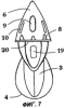 Один из предпочтительных вариантов выполнения консольной конструкции 3 представлен на фиг.4 в перспективном изображении, на фиг.5 – на виде со стороны устанавливаемого в нее двигательного модуля, на фиг.6 и 6а – на виде сбоку, а на фиг.7 – на виде снизу. Как показано на фиг.7, периферийный обод 20 нижней части 6 консольной конструкции 3 снабжен равномерно распределенными монтажными отверстиями 11 под болты, служащие для закрепления двигательного модуля 1.