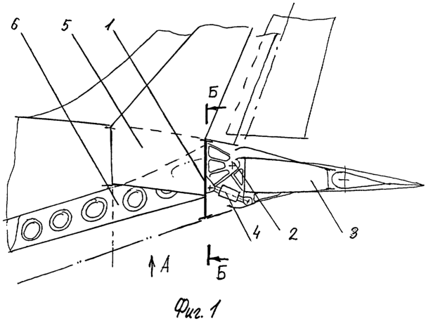 на фиг.1 – вид сбоку на хвостовую часть транспортного самолета;