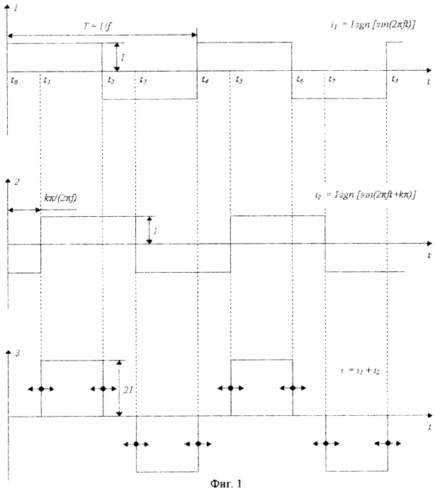 Сложение сигналов дает выражение для искомого тока питания электрической нагрузки (диаграмма 3 на фиг.1)
