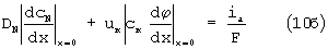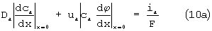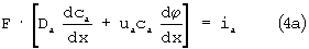 – для тока анионов Cl– – (индекс «а») с учетом диффузии и миграции