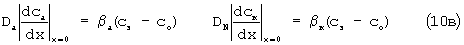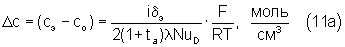 Решение системы (10а)…(10в) дает разность концентраций электролита на граничной поверхности канала и в объеме потока: