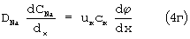 – уравнение баланса массы по Na в электролите с учетом противоположных направлений миграции Na+ и диффузии разряженного в прикатодном слое воды иона Na в составе молекулы NaOH:
