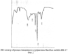 Пример 3. ИК-спектроскопия. Культуру выращивают и выделяют сурфактин как в примере 2. Раствор сурфактина в дистиллированной воде высушивают лиофильно и полученный порошок диспергируют в вазелиновом масле и подвергают анализу на инфракрасном спектрофотометре Specord (Carl Zeiss Jena, ГДР) М-80. Данные спектра поглощения (фиг.2) свидетельствуют о наличии следующих полос: пептидных связей (1648 см-1); аминогрупп (1568 см-1), а также карбоксильных групп (1420 см-1) и сложноэфирных связей (1248 см-1, 1080 см-1), что характерно для молекул липопептидов.